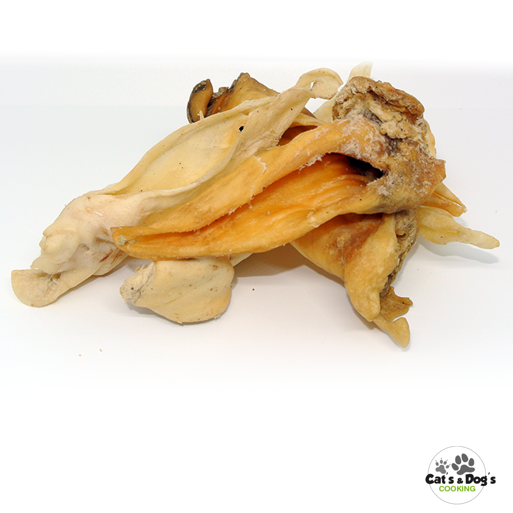 Le mix oreille contient : 100g d’oreille de lapin (nature et avec poils), 3 oreilles de bœuf (nature, soufflée et avec poils), 1 oreille de porc, 50g d’oreilles d’agneau.